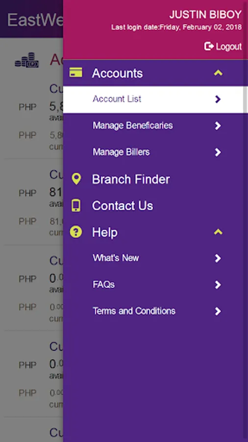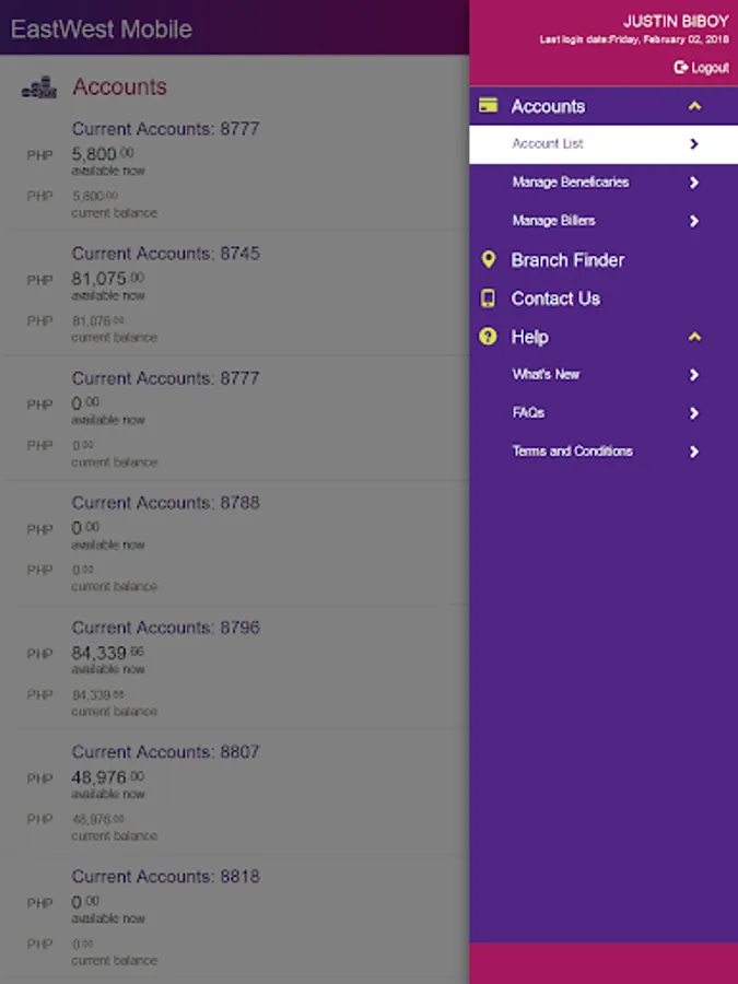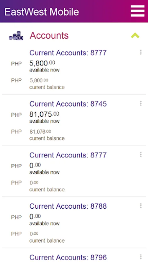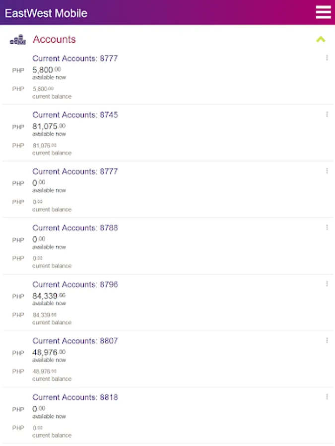 EastWest Mobile is a banking app designed for customers enrolled in EastWest Online Banking, so they can conveniently access their accounts - whether Savings, Checking, or Credit Cards - on mobile devices.