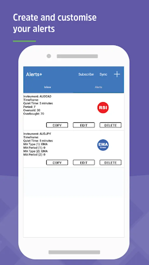 Easy Alerts+ is the ultimate tool for traders who wants to have greater control over their favourite technical indicators. You can decide the parameters which the indicators will use to perform market analysis, thus delivering better and more accurate assessment of the market condition. With our extensive list of popular technical indicators (many more to come in the next few weeks), and wide range of popular instruments across multiple timeframes, you can easily create custom alerts to help you stay connected to the vibrant and dynamic market wherever you are.