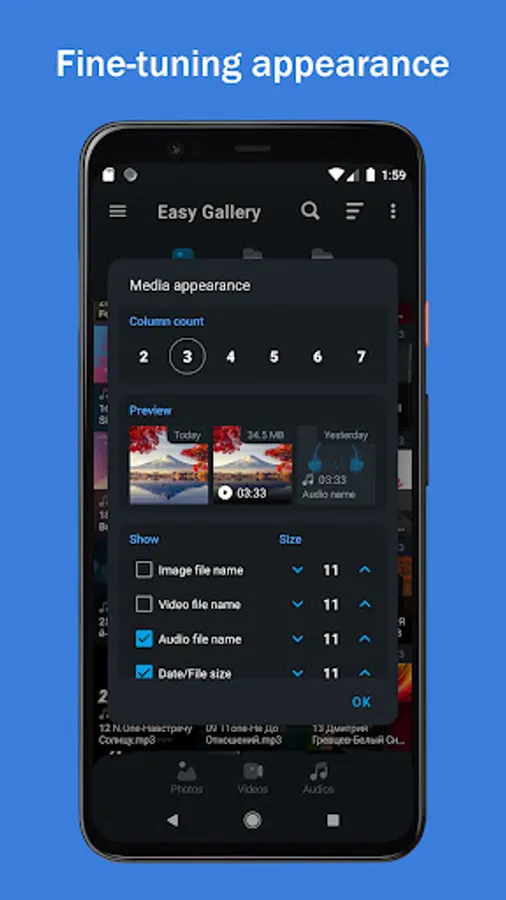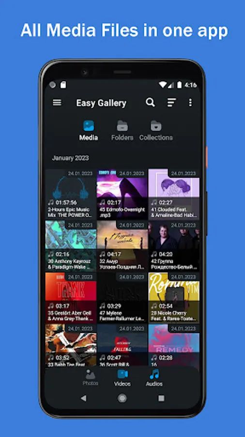 In our gallery, you can view not only photos or videos, but also audio files that are on your device.