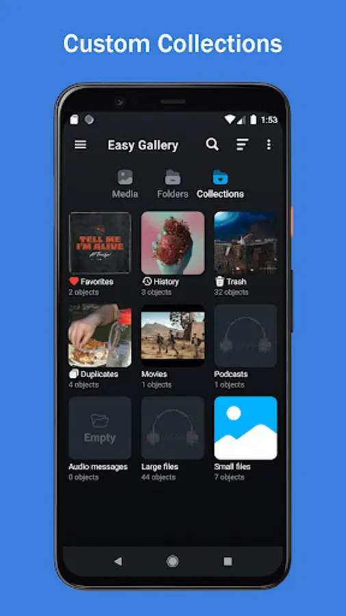 Easy Gallery app is small, so you will have more space for media. All while using less memory on your device - so it won't slow down your phone.