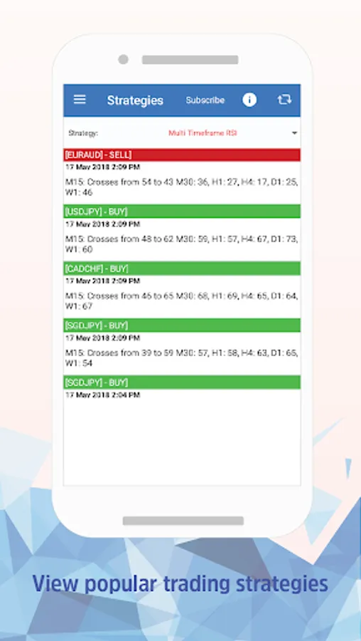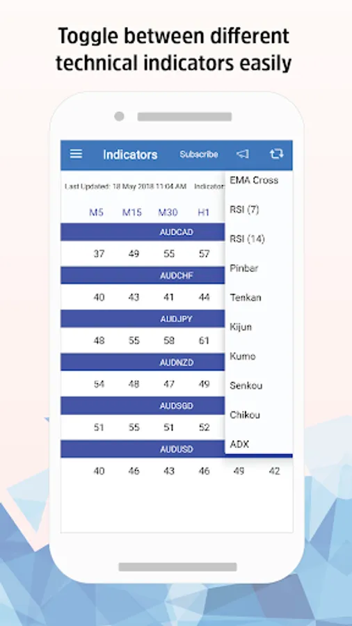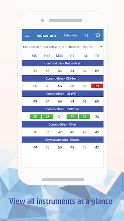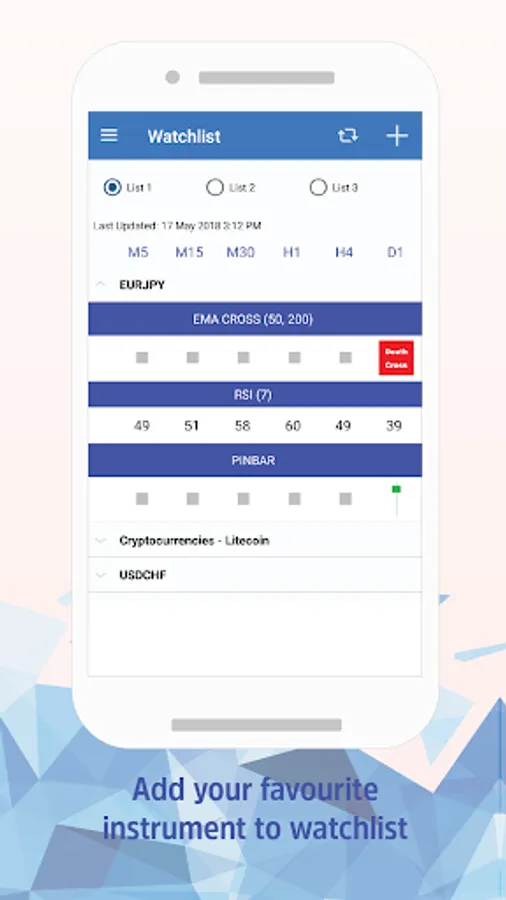 ☆ Advanced Watchlist that let you view multiple indicators for the instrument you are interested in at one glance. No more switching of apps to view the various indicators for the same instrument. [Subscribers have full access to all timeframes]