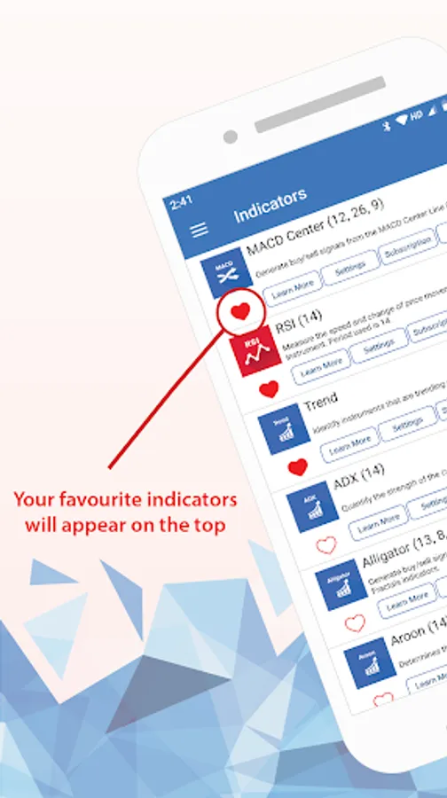 ☆ Library view which display full listing of all instrument for each indicator. You can toggle between the different indicators easily within the app.