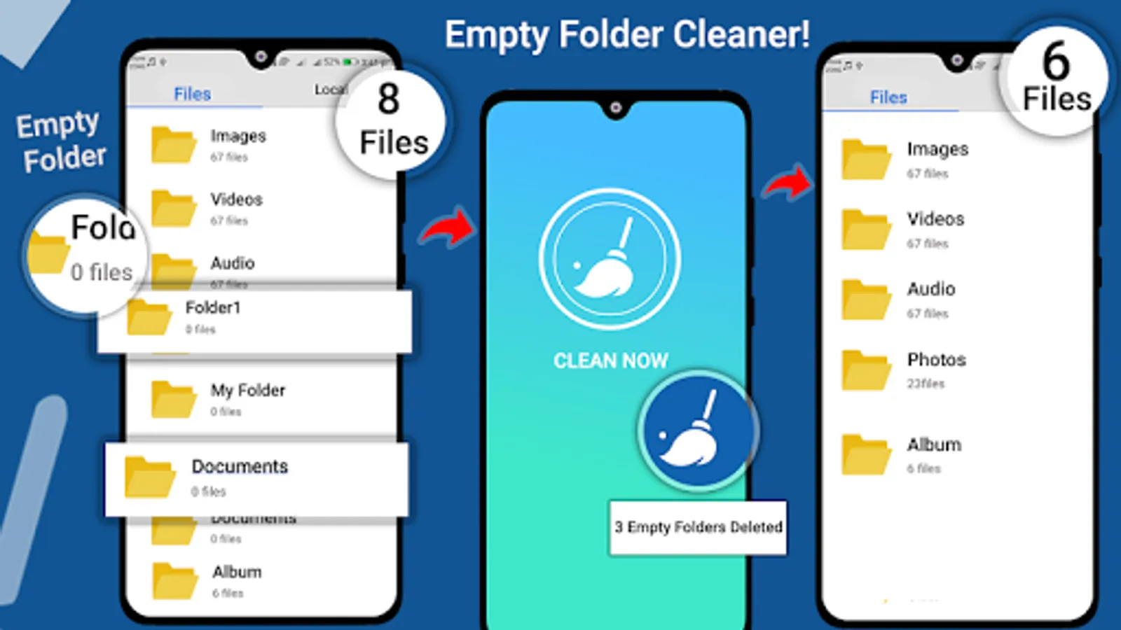 Tired of having empty useless folders in your device storage? your device by installing this app that will let you to delete all the empty folders in your phone. All the empty trash folder is scanned all over the phone and deleted easily. Empty Folder Cleaner-Clean all empty folder from phone. Remove unwanted empty folders from your device storage easily. Clean all unused blank folders that can lead to get your phone more efficient and greener. Residual folder cleaner application scans all of the empty folder in your phone, its scans all the phone storage and sd card storage and delete the unwanted empty folder automatically.