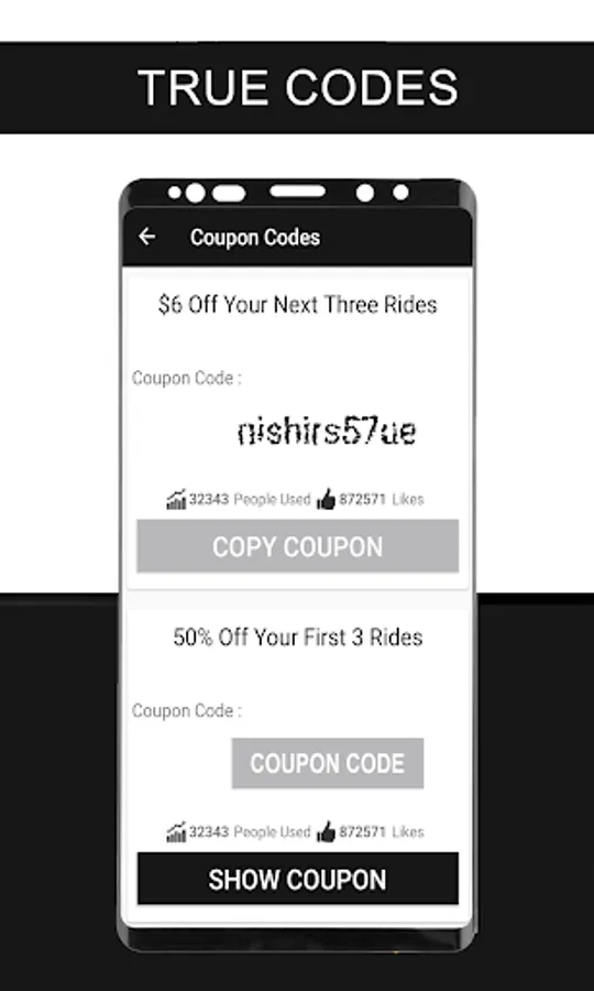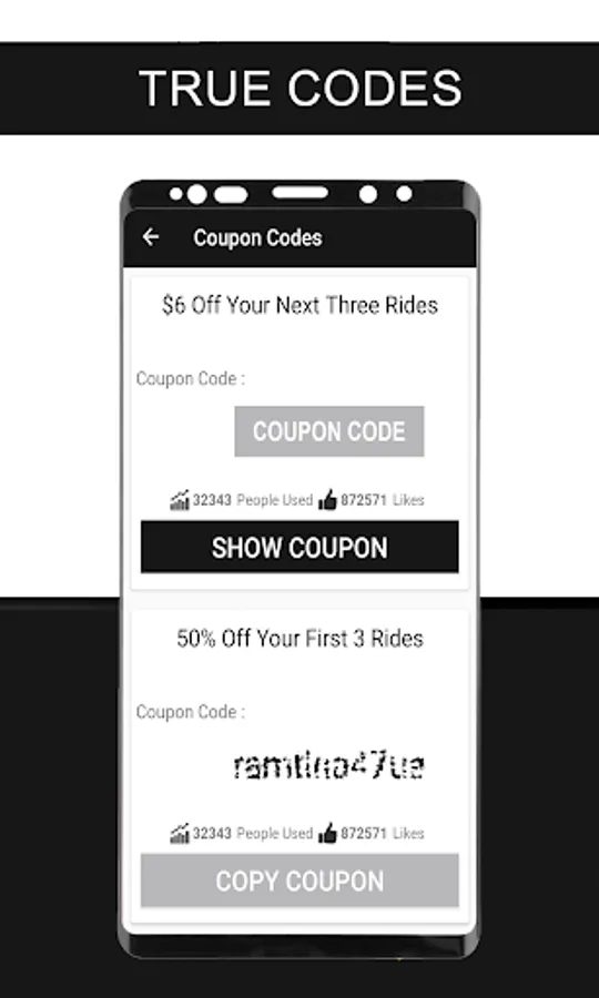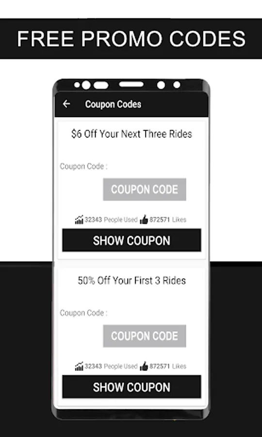 Coupons for Uber is not an Official App and All rights remain their respective owners. This App only gathers available Coupons for more convenience of users only.