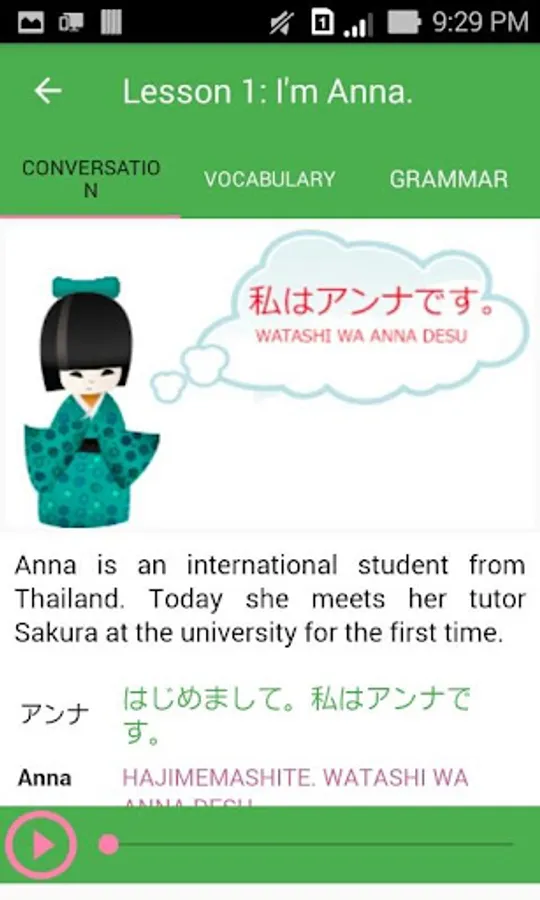 - Learn the Japanese easily through audio lessons. This feature need a internet connection but you can learn Japanese communication easier.