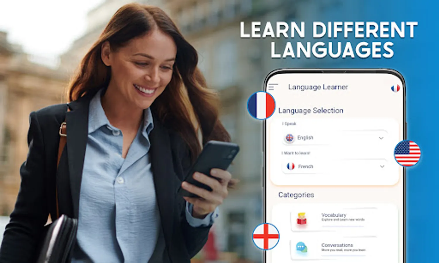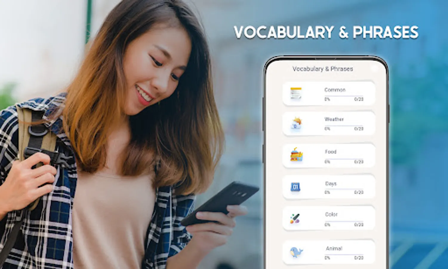 Vocabulary & Phrases app provide you language learning free multi option questions and help you as a language learner. Learn a new language through vocabulary improvement language learning app. Best way to improve your vocabulary and get phrases correction as a helper to learn German or any other language from free language learning apps. Learn languages help people to learn foreign languages of the world to speak and translate for improve your speaking style with vocabulary phrases. Learn common word to speak at daily basis. A list of weather climate, food names, name of the day, color name and animal name into different languages. Build vocabulary phrases to improve your speaking style. Speak different languages to know real pronunciation of the picture into different language. Conversation language learning offer you to more read and more learn a new language. Learn a conversation demo between two countries people and also learning lesson to improve vocabulary and pronunciation. Language learner app help you through different languages. This is a learning chance to language learn to improve vocabulary & pronunciation. Learn a new language course help you a solid speaking pronunciation. Conversation lesson comes in this best language learning app.