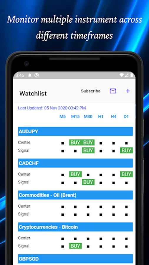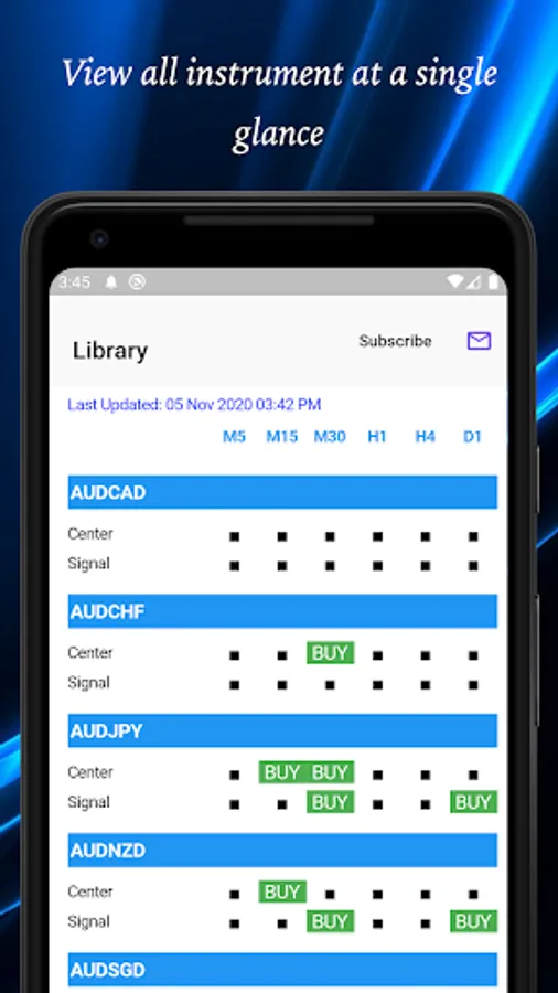 ☆ Timely display of BUY/SELL signals from two of the most popular and effective strategies of over 60 instruments across 6 timeframes,