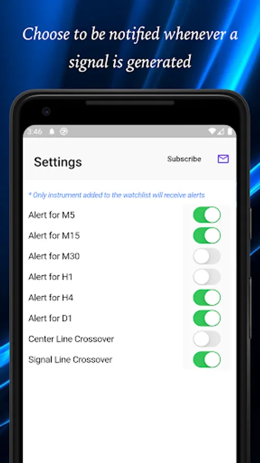 ☆ Timely push notification alert when BUY/SELL signals are generated based on your favourite instruments on your watch list,