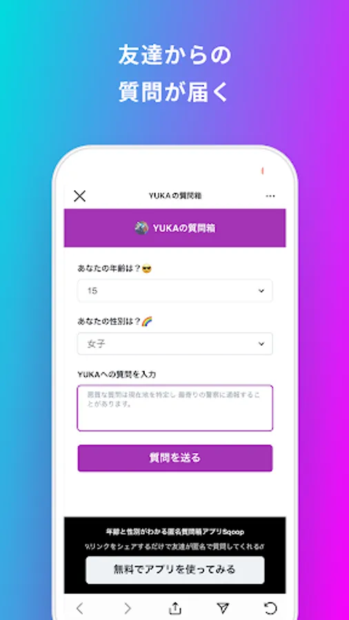 Sqoop is a question box app that allows you to know the age and gender of the questioner.