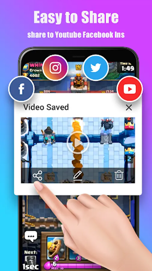 *Easy to share. When the record video or take screenshot finished, you can share the video and picture to other apps, like Facebook,YouTube, Instagram, Twitter...