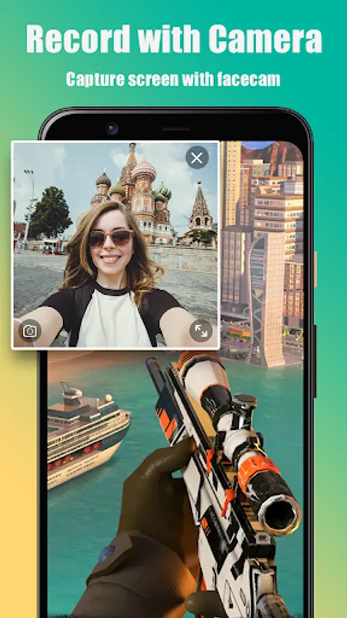 *Screen Recorder with Facecam.While in recording, EZ Screen recorder can add a facecam window, you can change its loaction in the screen, and switch the front and back camera with one click.