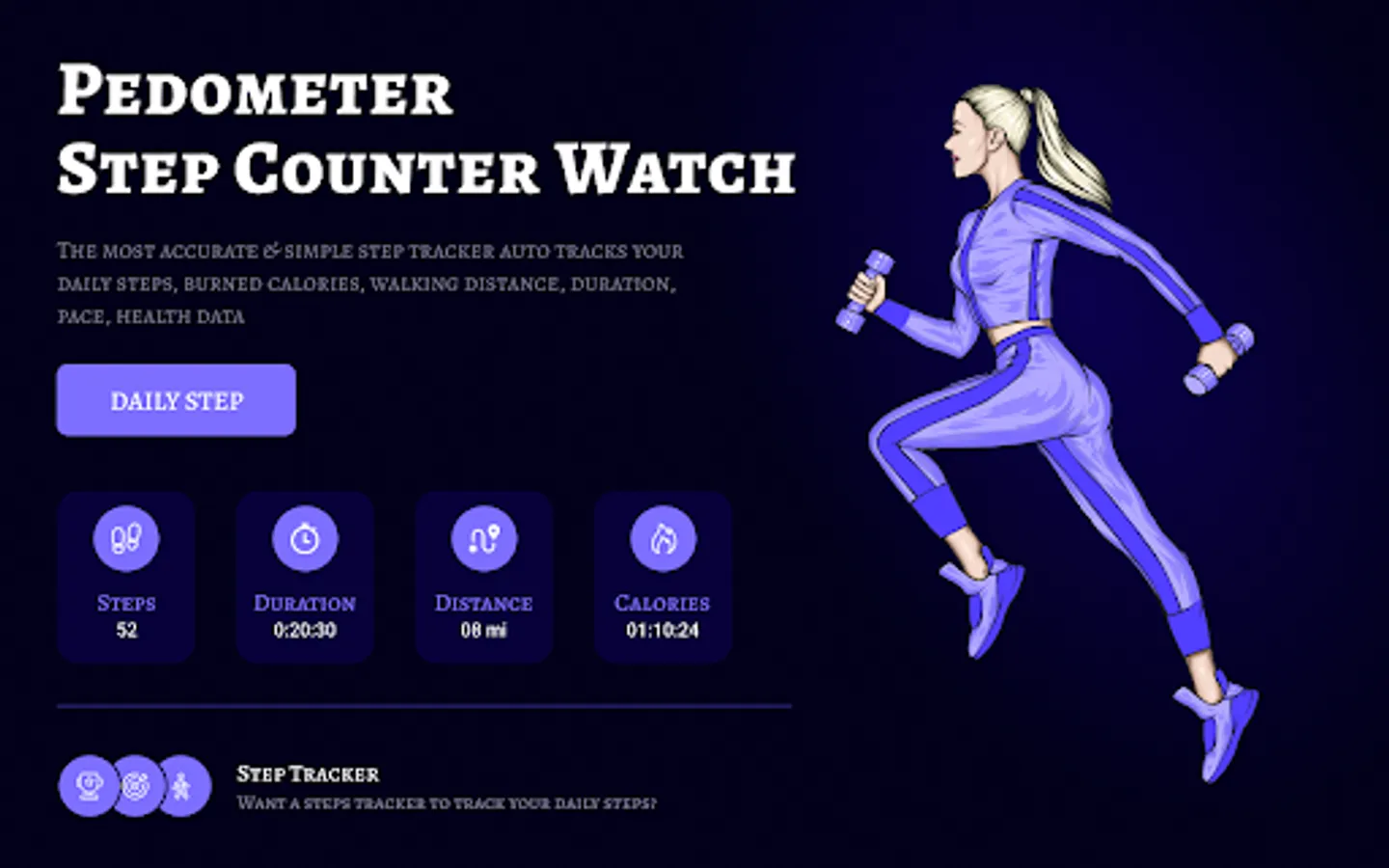 Pedometer - Step Counter Watch uses the in-built sensors to count and track walked steps and calorie burn. Track your daily activities like cycling, Running, Travelling, Rest , Tilt (mobile usage) etc. using Activity Tracker. It can be turned on / off when needed.