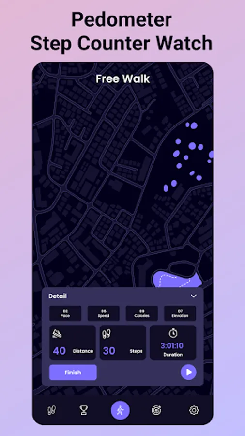 This step counter uses the built-in sensor to count your steps. No GPS tracking, so it barely consumes battery power.