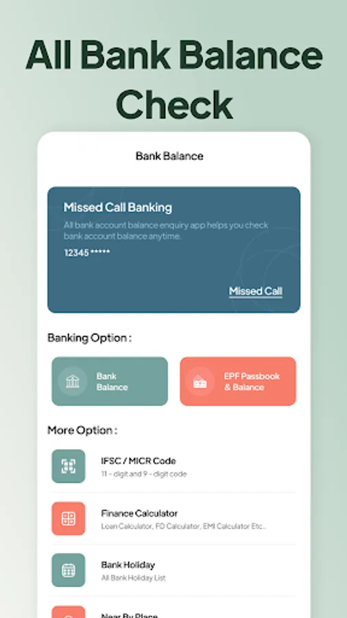 All bank account balance enquiry app helps you check your bank account balance anytime.