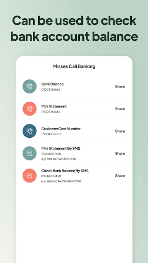 Bank balance inquiry and get a mini statement from your bank by giving a missed call.