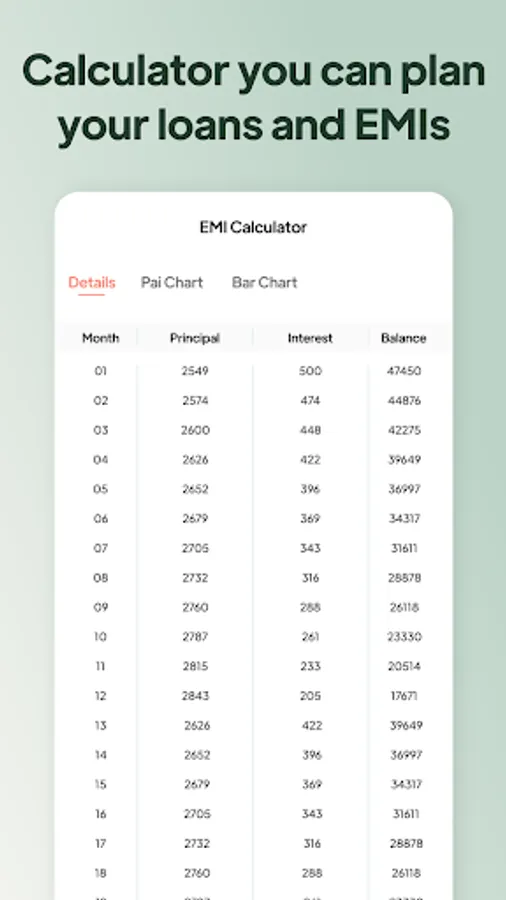 Check your loan EMI(Every Month Installment) very easily for your existing loans or for new loans within this app.
