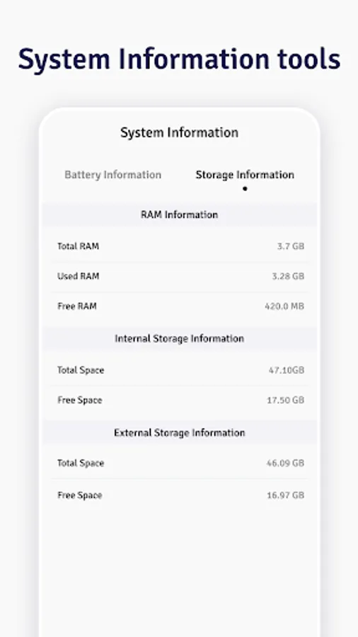 8) Device & System Information: Device Info app lets you know all the essential details like CPU, GPU, Battery, Screen, Phone Model, Device name, Manufacture, Android Versions, Memory, Sensors and all the System info and so on.