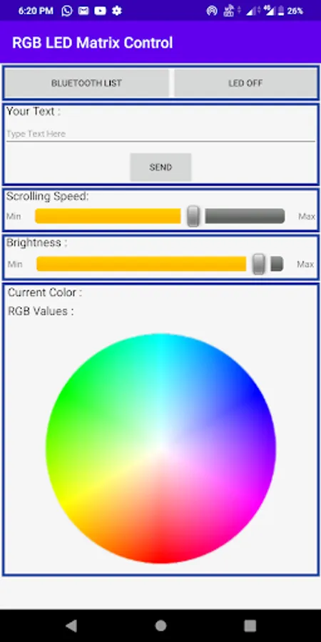 By using this app you can control your own made RGB LED Matrix. You can control speed, brightness on run time.