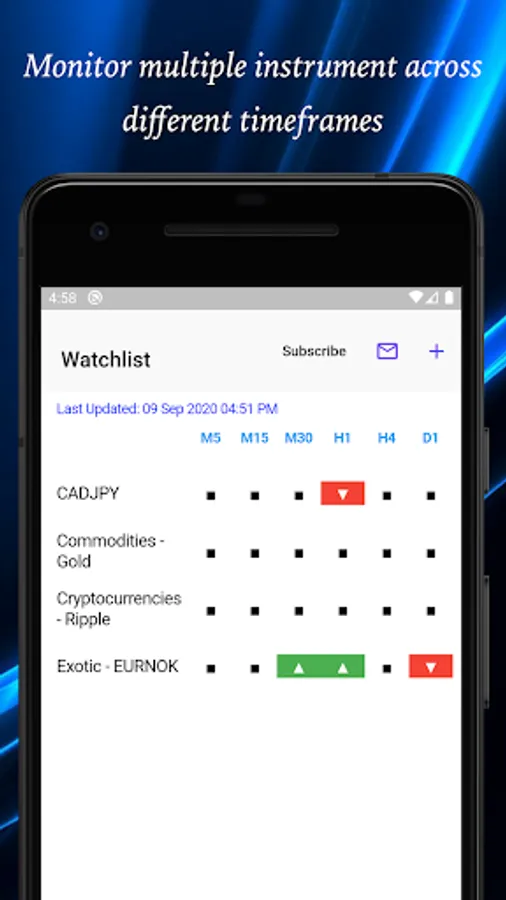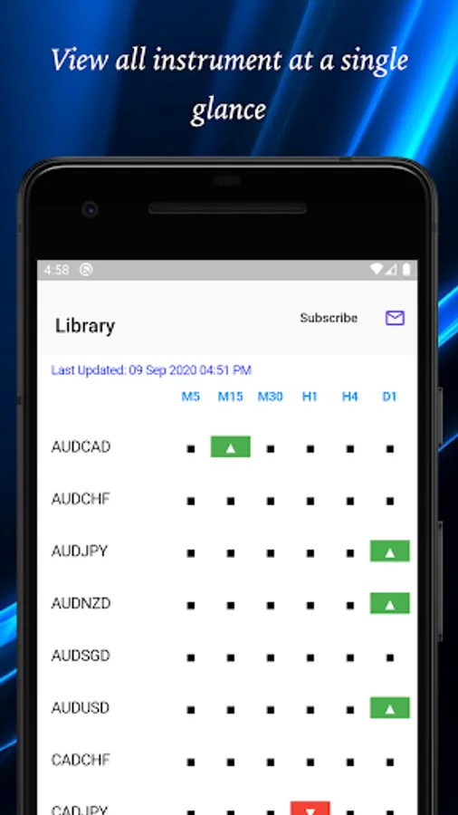 ☆ Timely display of Trend status values of over 35 currency pairs and major global indices across 5 timeframes,