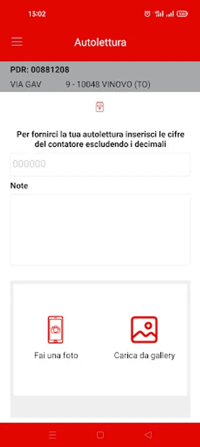 - Communicate the gas self-reading (also with the possibility of sending a photo of the meter)