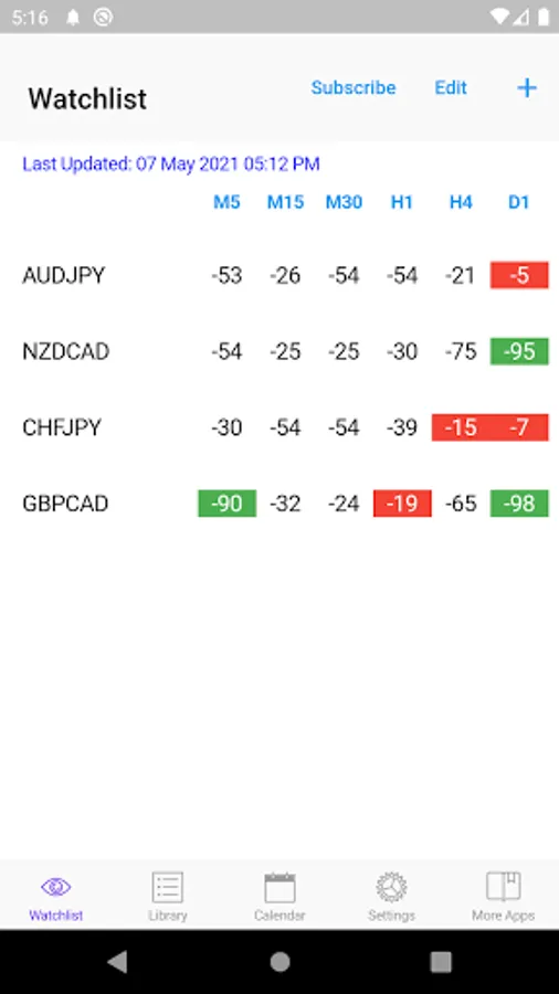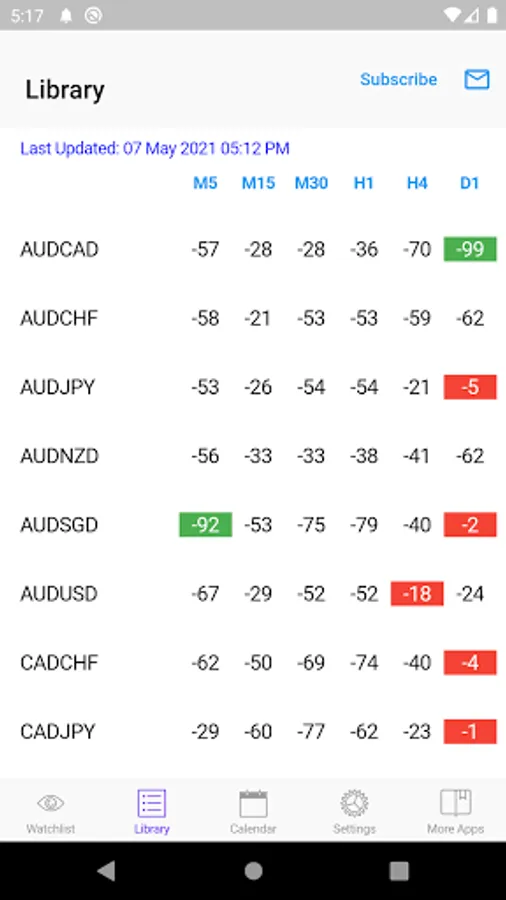 - Timely display of Williams %R values on multiple instruments (Forex, Commodities and Cryptocurrencies) across 6 timeframes (M5, M15, and M30 are only available for subscribers on the watch list),