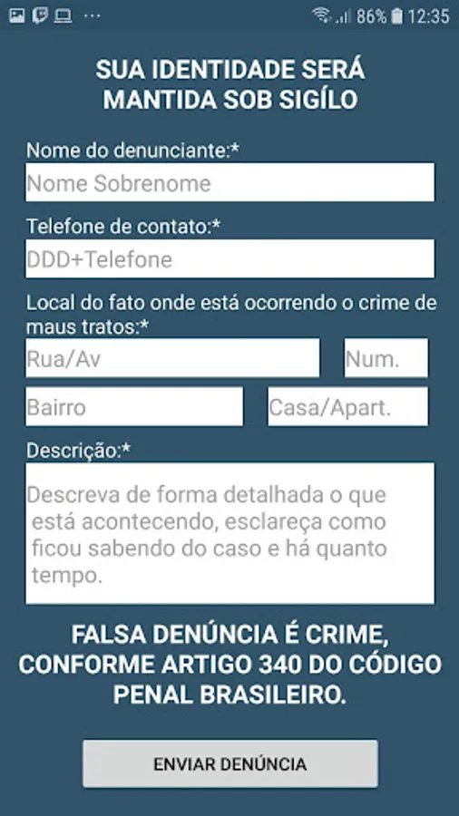 Application to denounce mistreatment or cruelty to animals exclusive to the city of Nova Ponte - MG, forwarding directly to responsible.