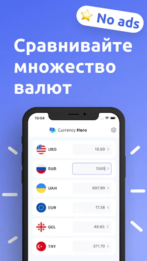 A simple and powerful currency converter for travelers and finance professionals. A multi-currency converter with cryptocurrency support, accurate exchange rates, and the ability to work offline. Compare currencies, learn exchange rates, and convert quickly and conveniently. No ads and a clean, modern design make using the app incredibly comfortable.