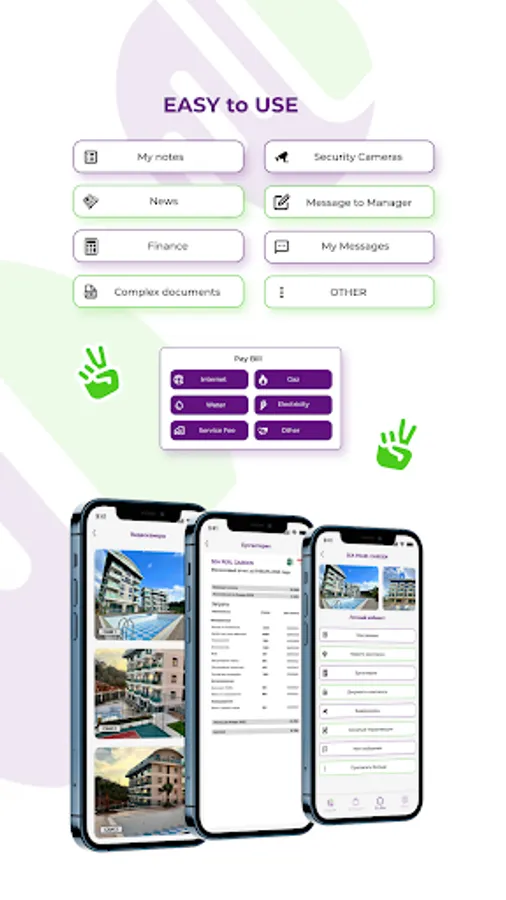 The "EasyLife HOMES" section is the only app of its kind to control your own or rented property. Payment of utilities (electricity, water, internet, Aidat), delivery of bottled water or gas. Viewing online cameras. Communicating with the Manager of the house using the built-in messenger with automatic translation of any language. Search for housing to buy or rent by given parameters.