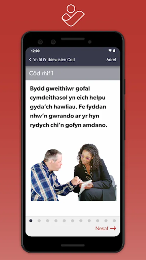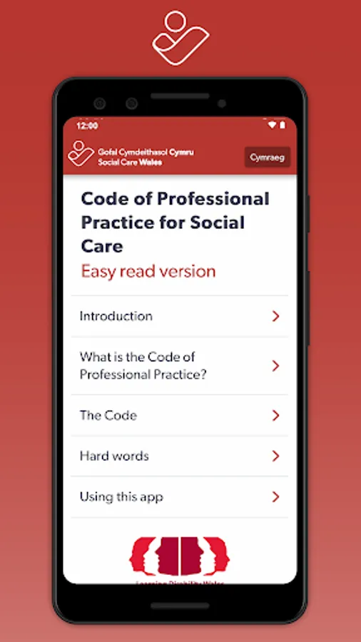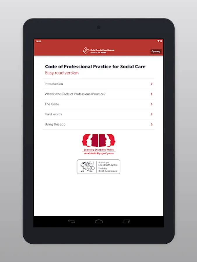 Mae’r ap Côd Ymarfer Proffesiynol dwyieithog hawdd ei ddarllen wedi’i ddatblygu gan ddefnyddio delweddau Photosymbol i egluro’r safonau.