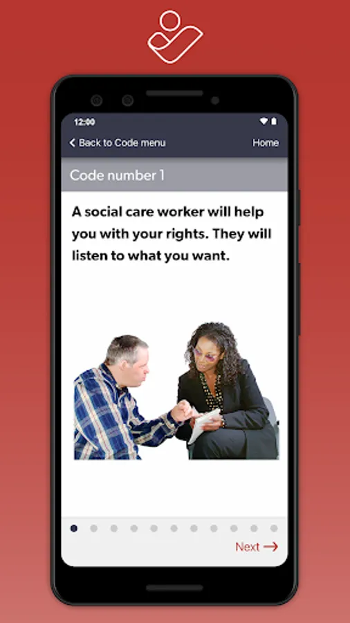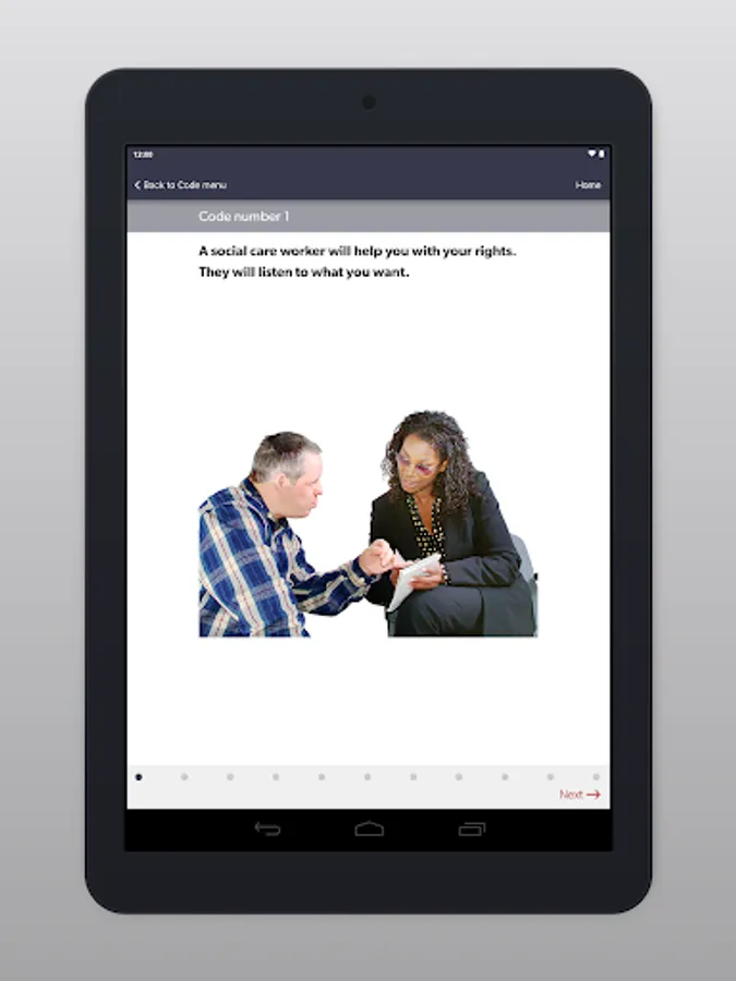 The bilingual easy read Code of Professional Practice app has been developed using Photosymbol images to explain the standards.