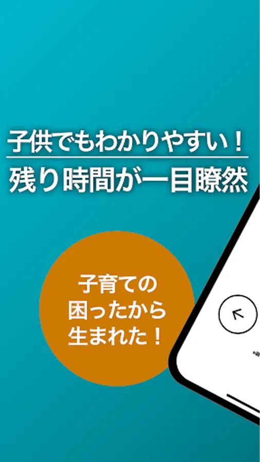 The biggest feature of the easy timer is "easy to see the remaining time". Many timer apps display a countdown of the remaining time. However, Easy Timer uses a visual UI that allows even children to see the remaining time at a glance. It looks like an hourglass, for example, a red-filled circle disappears in a fan shape over time, and finally disappears completely. Since the remaining time is displayed in color and shape, even children who do not yet understand the time can easily share the time and communicate with each other, saying, "When this red circle disappears, it's over."