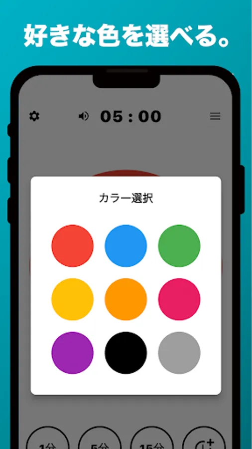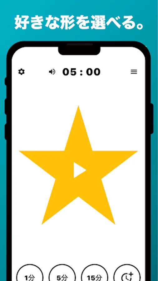 When making this app, I wanted children to not only tell the time, but also have them move independently. In order to have children set an alarm, we prepared 9 colors and made it possible to choose shapes such as squares and stars as well as circles.