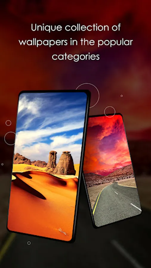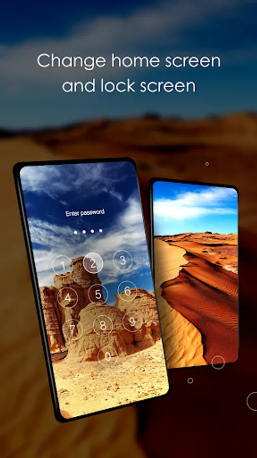 - The application has only free wallpapers and screen locks with desert views in the background.