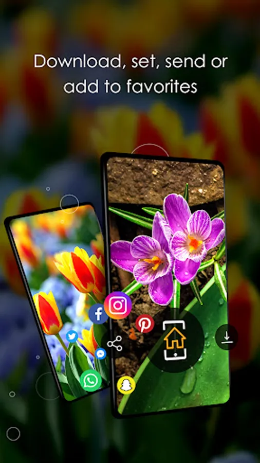 - High quality beautiful wallpaper with flowers - can be set as a wallpaper on which you will find meadows, flower petals, endless fields of colorful plants or screen lock with the colors of spring or simply send your friends or save high quality wallpaper with a flowery view in the gallery.