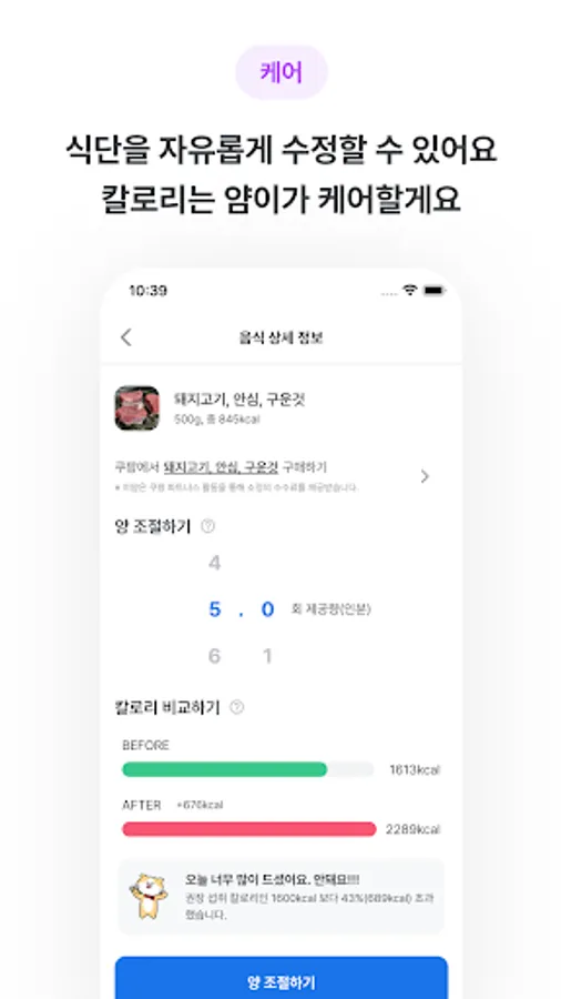 Are you anxious to increase the amount of food or add food? This is fine too! When you change your diet, if your daily calorie intake is too high, Yum will warn you in advance! Feel free to make your own meal with Yum's help~