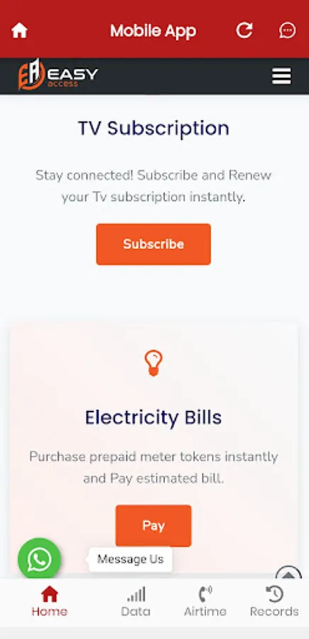 This application is designed to enable users purchase data bundles, recharge airtime, pay Tv subscription, electricity bills and purchase result checker pins such as (WAEC, NECO, NABTEB, NBAIS) easily in just a few steps. It is a one-stop bill payment application for people residing in and around Nigeria.