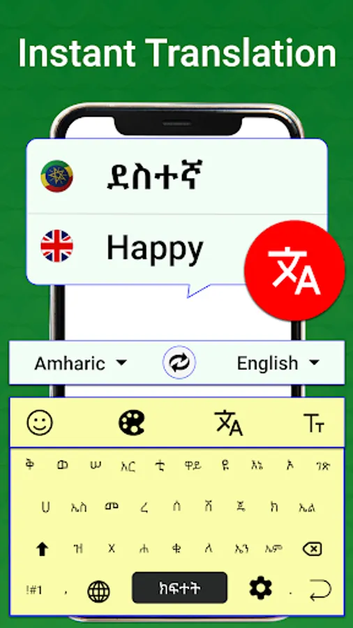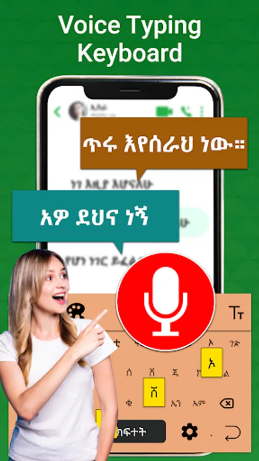 Fast Amharic voice keyboard allows you to type Amharic text easily through voice typing feature. This speech to text keyboard saves a lot of time and effort to type Amharic characters. The text appears as soon as you start speaking into the application. Once you get used to this app, you can use it to create and share long texts and articles on social media platform and messaging application