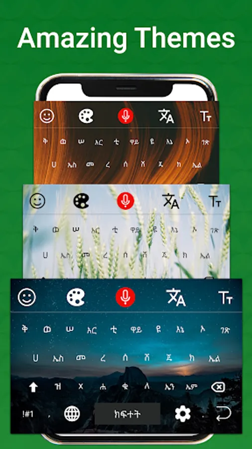 A very different feature that allows you to insert any image on your Amharic voice keyboard background. Give your keyboard a new look by applying custom background