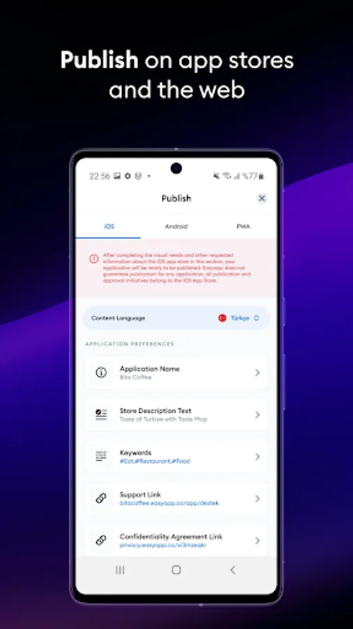 Easyapp eliminates the challenges faced by businesses and individuals in the app creation process, offering an easy, fast, and technical knowledge-free app creation experience.