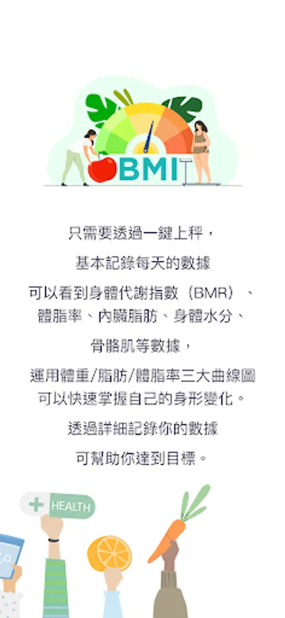 You can see data such as body metabolic index (BMR), body fat rate, visceral fat, body water, skeletal muscle, etc.