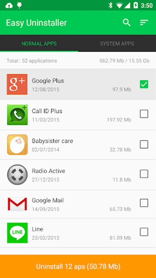 ★ Sort apps by size, name, install date.
