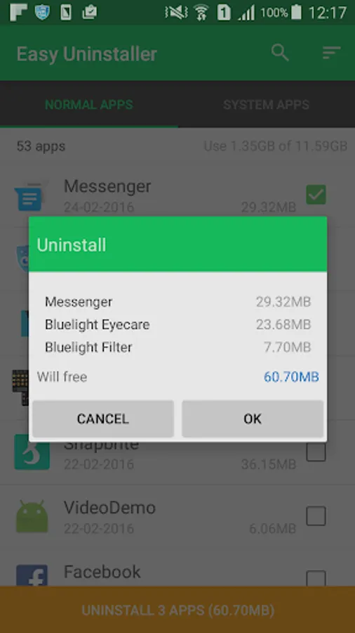 Easy Uninstaller is a tool to uninstall apps for android phones. It is quite easy to use, you can select multiple apps that you want to uninstall, and click "Uninstall" button to uninstall them.