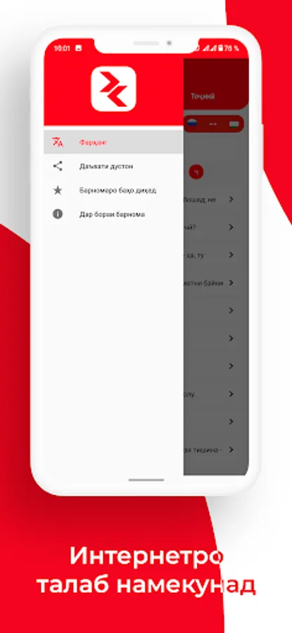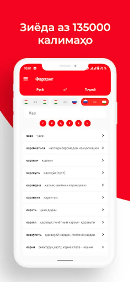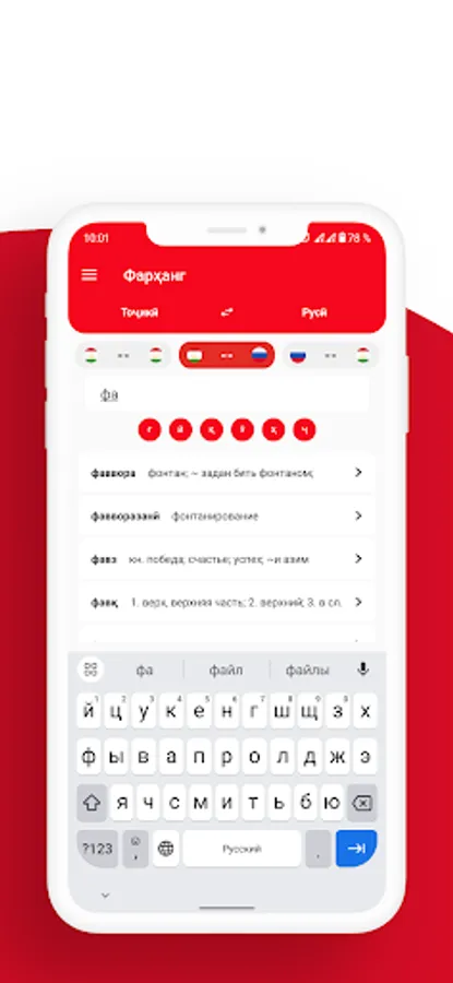 - Встроенный толковый словарь таджикского языка;