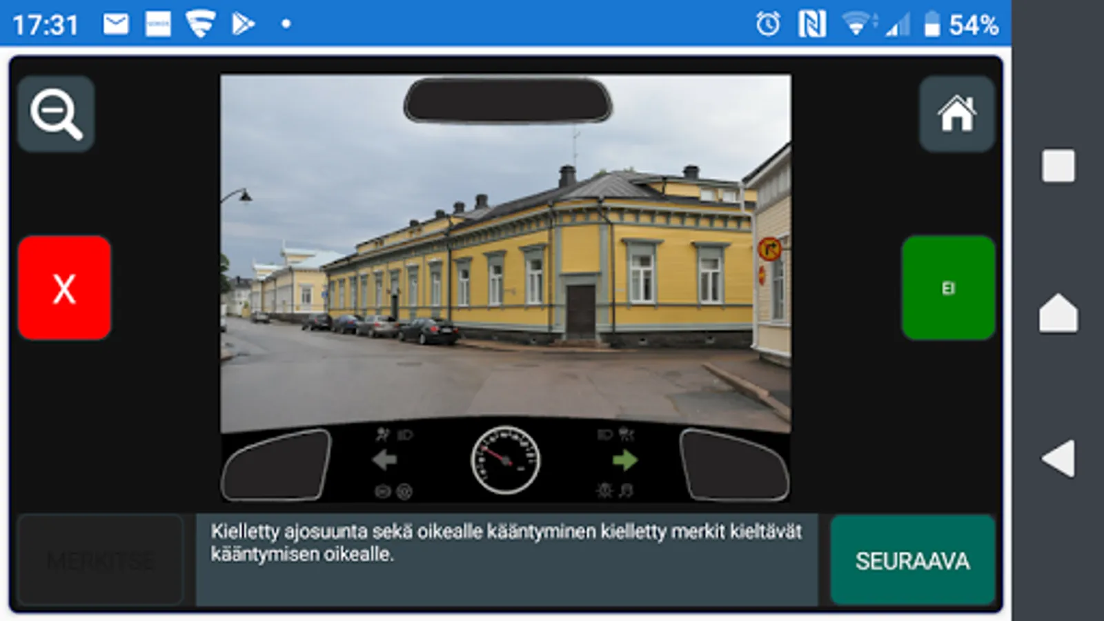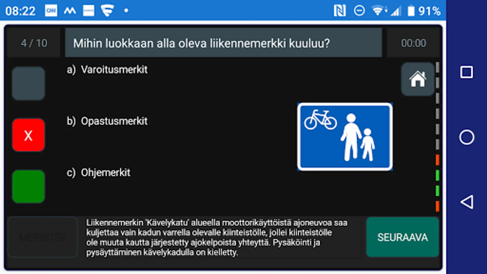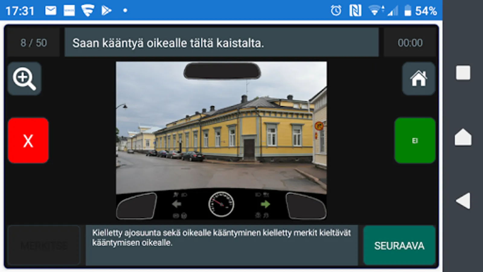 You can only practice the sets of the theory test, traffic signs and image test at first. In the internship phase, you will see your skills in the LED bar, a picture of the circles and feedback text.