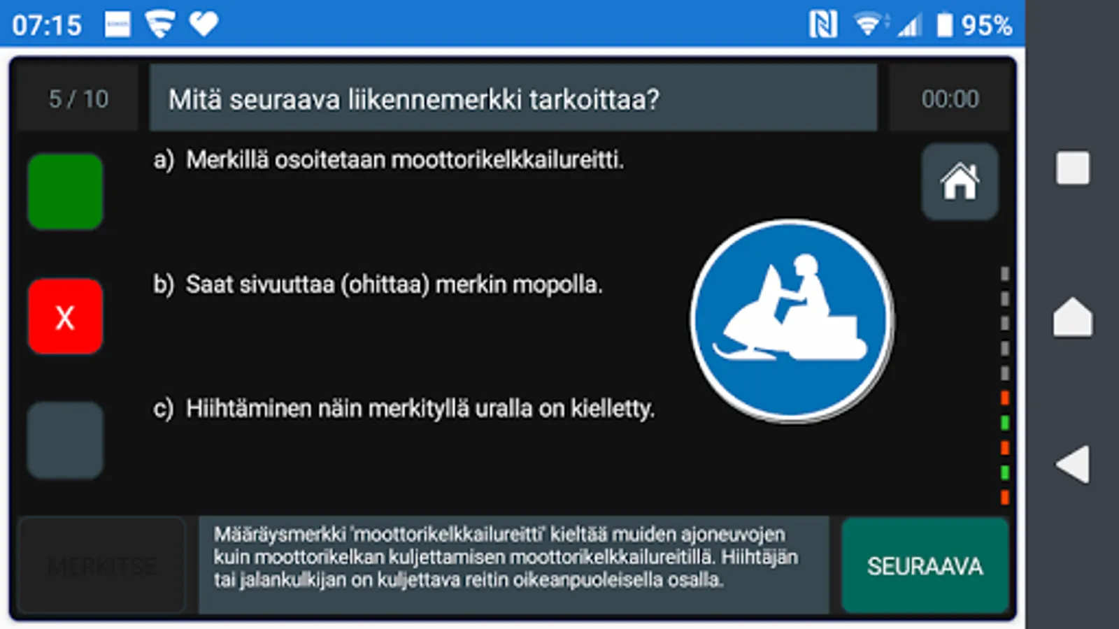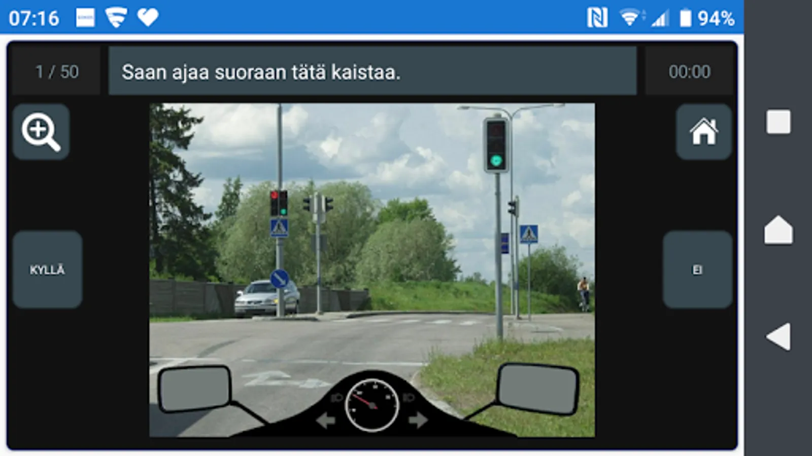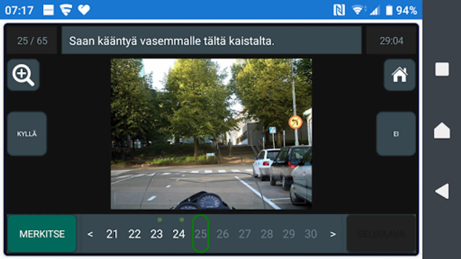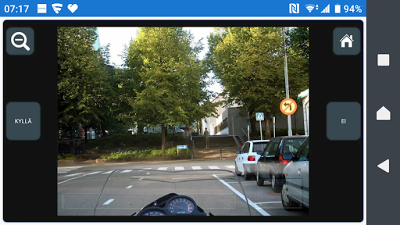 At first, you can only practice the series of theory test, traffic signs and picture test. During the training phase, you can see your skills on the LED bar, the circles in the image and the feedback text.