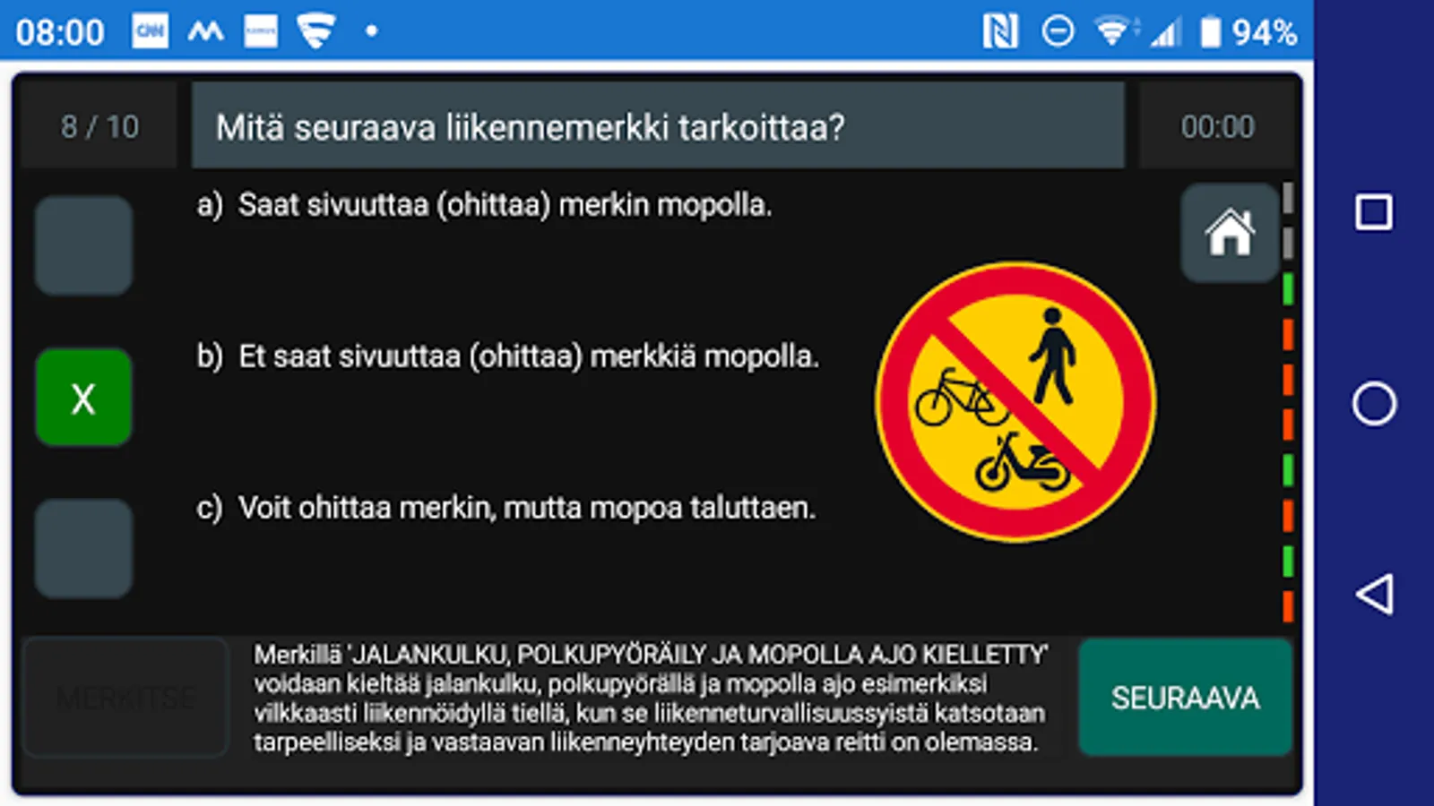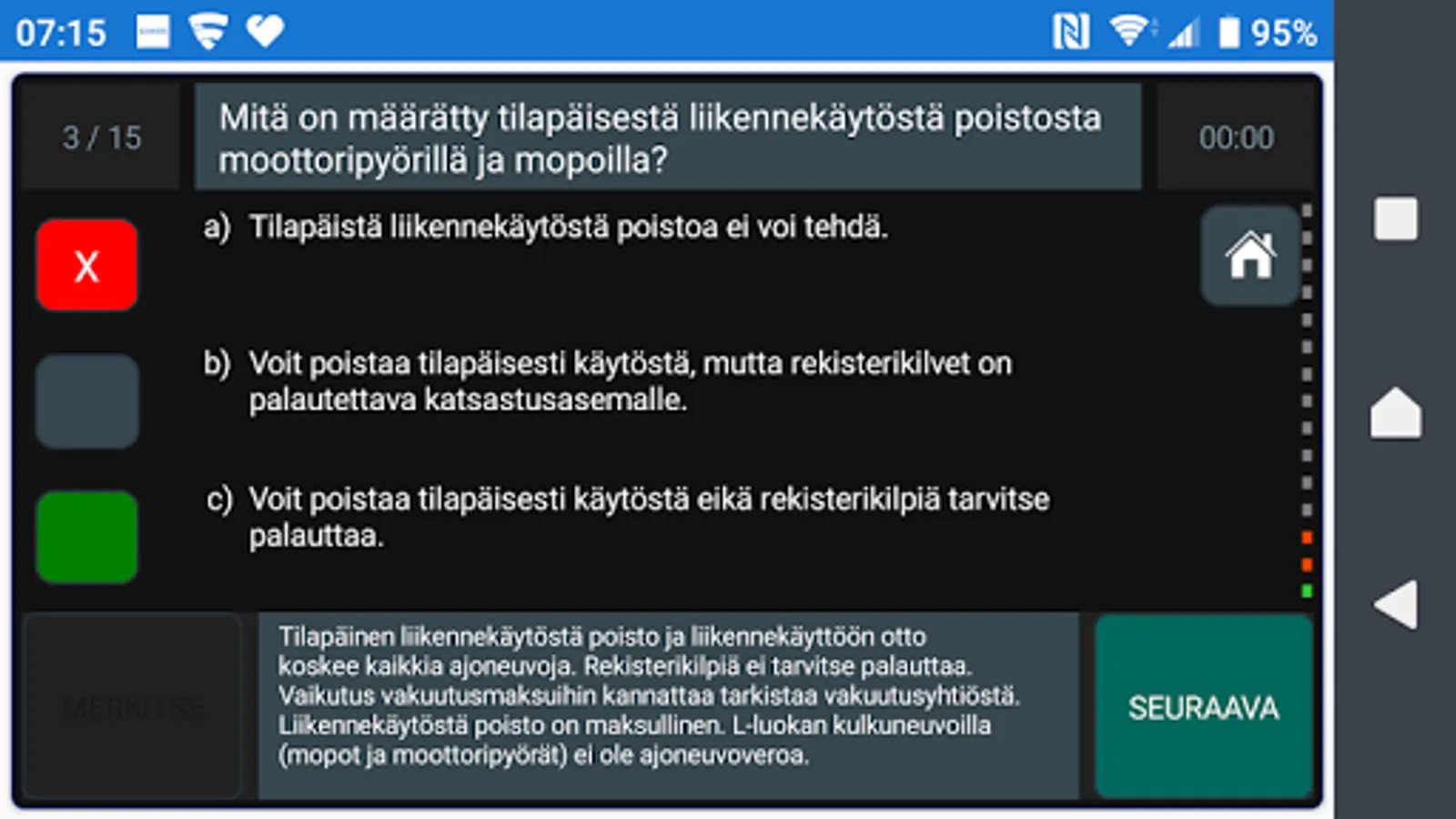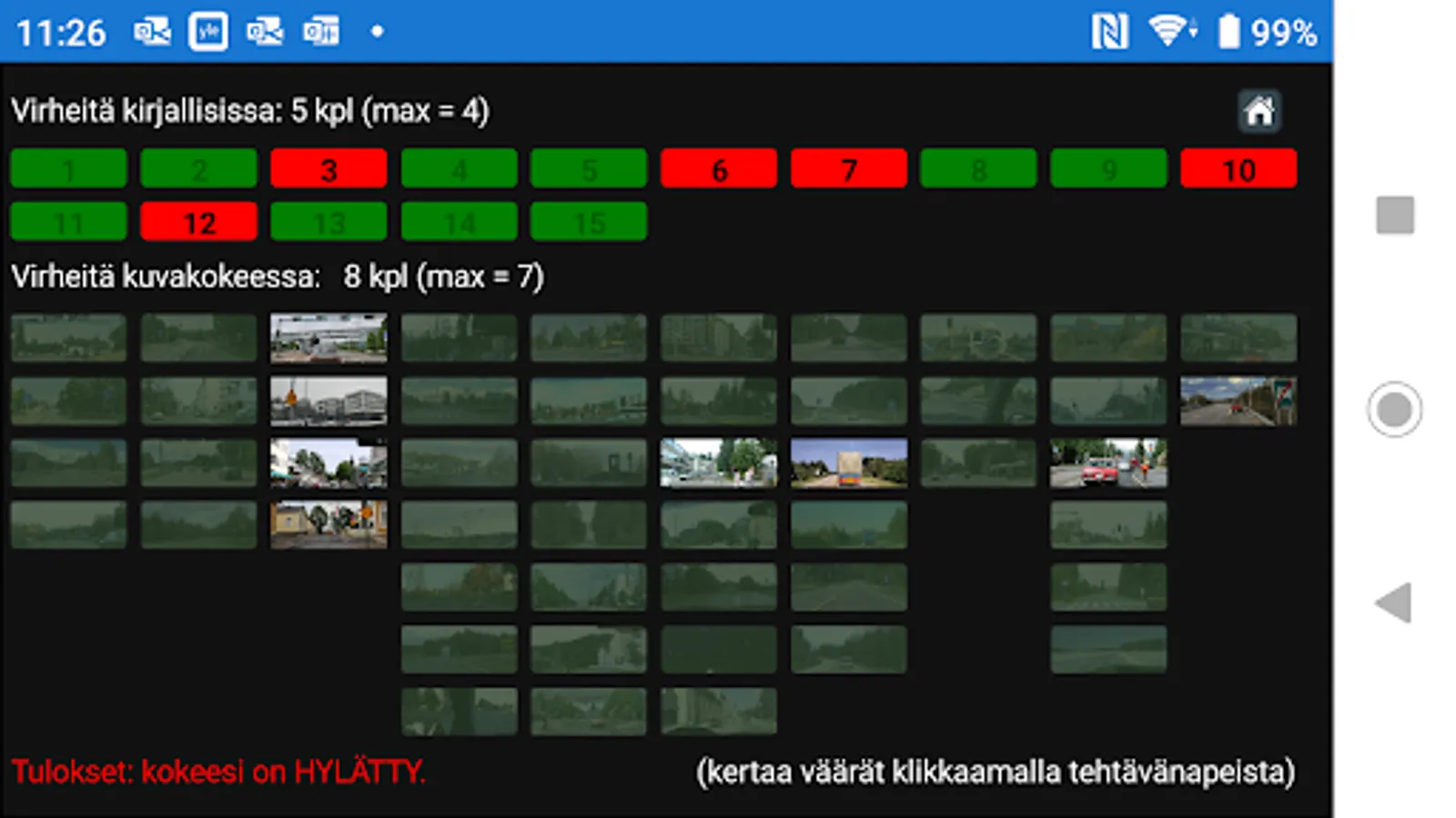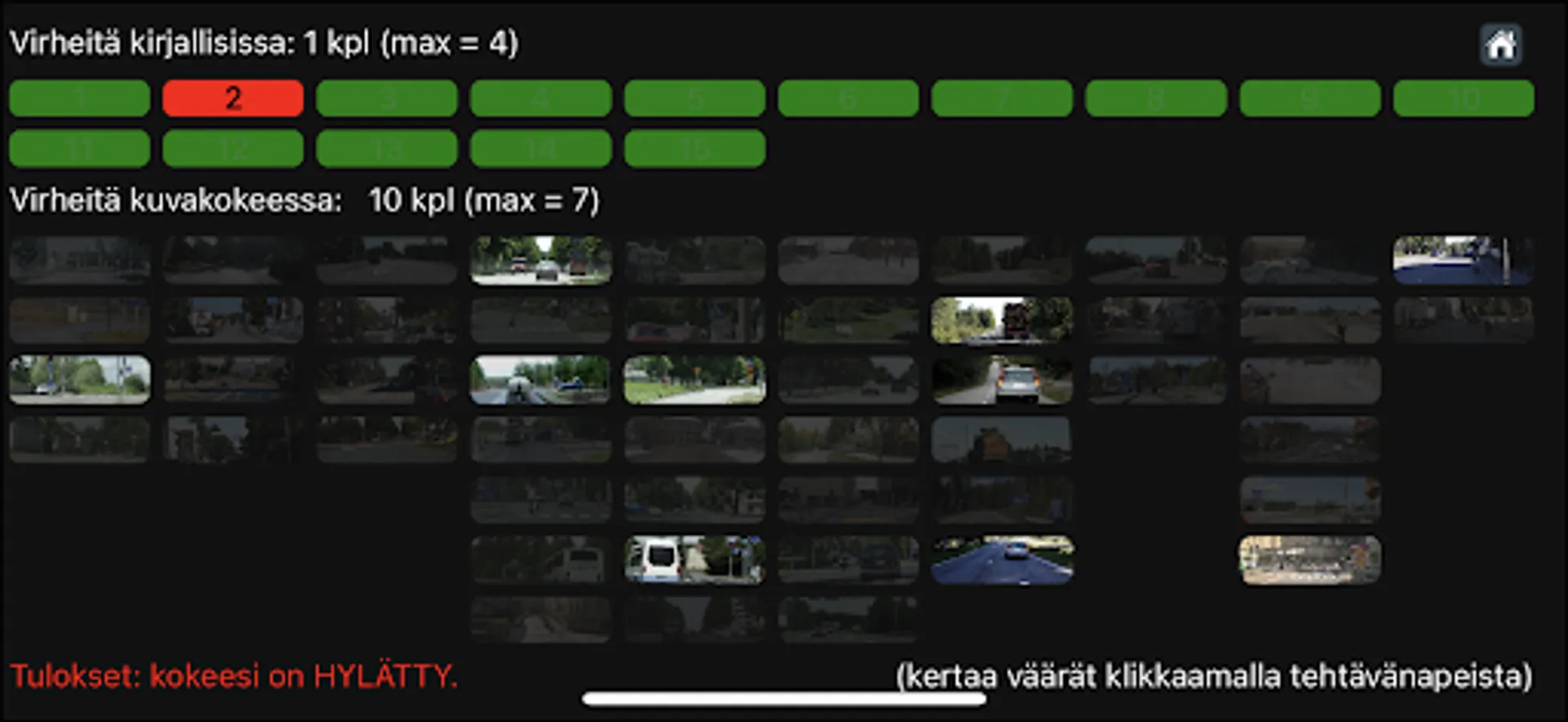 At first, you can only practice the series of theory test, traffic signs and picture test. During the training phase, you can see your skills on the LED bar, the circles in the image and the feedback text.
