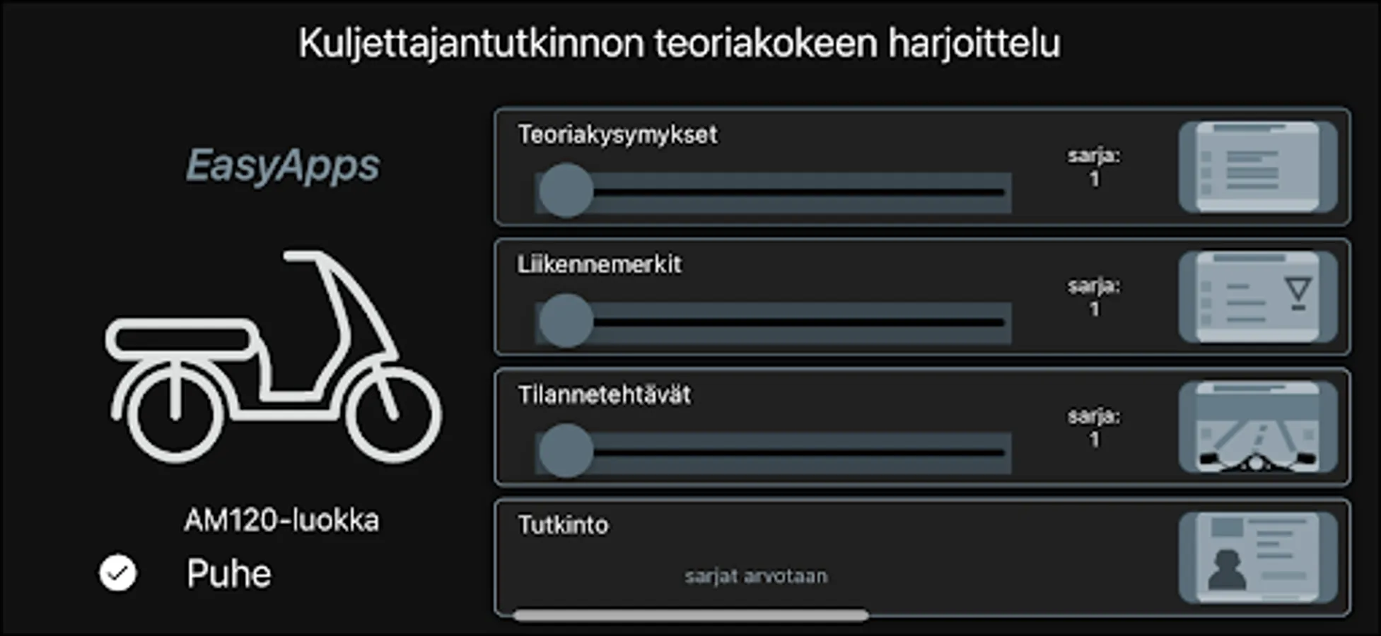 In the AM120 class: 100 snapshots, 90 theory questions, 40 traffic signs.