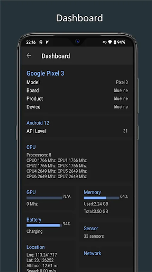 It is packed with many useful features like CPU, RAM, OS, Sensors, Storage, Battery, Camera, WiFi,Wake on LAN and