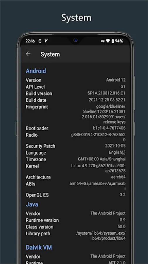 - Android system info like version、API level、build version、build date etc..