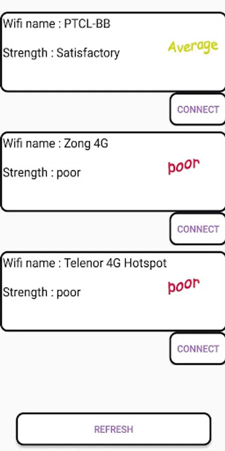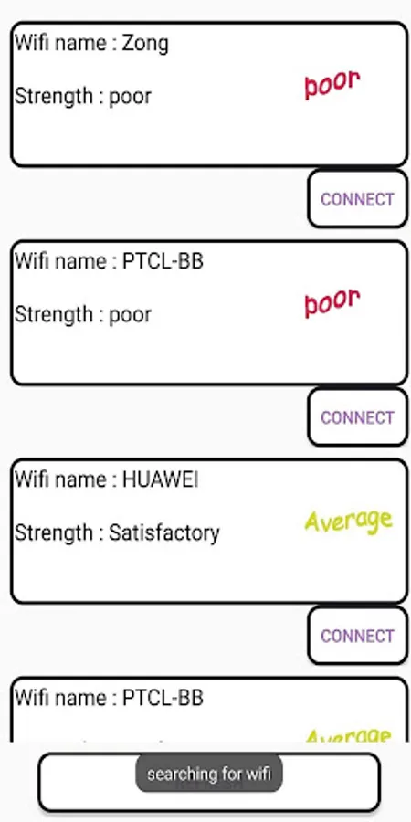 This app grades WiFi networks by their signals strength in your room, makes it easier for your to decide which wifi network to switch to. In addition it also gives you addition information about the available WiFi networks .Information provided for each WiFi network is follows.
